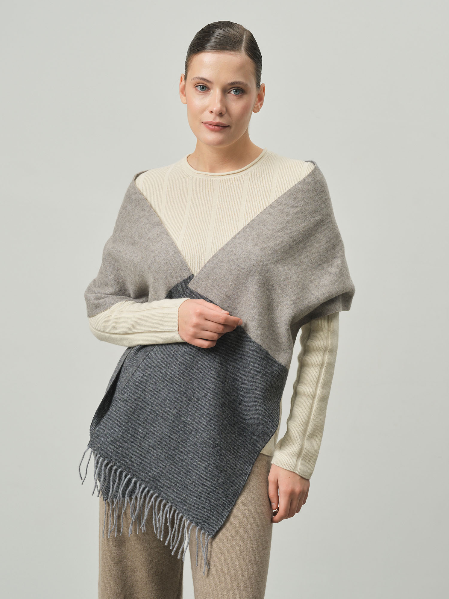 Долго искала идеальный шарф. Натуральная шерсть на ощупь очень мягкая, сочетание светло-серого и темно-серого добавляет образу особую элегантность. Тепло и стильно! |