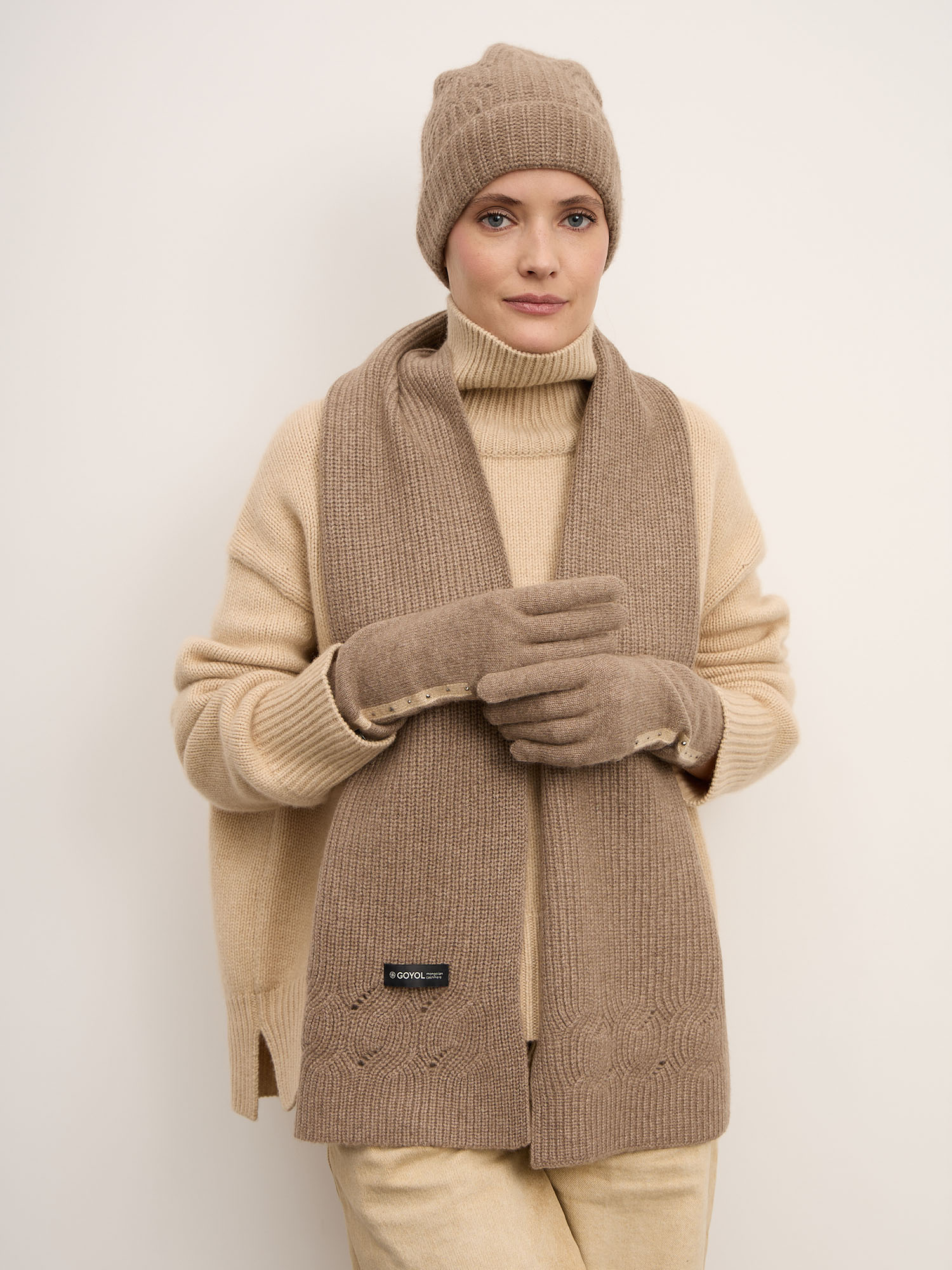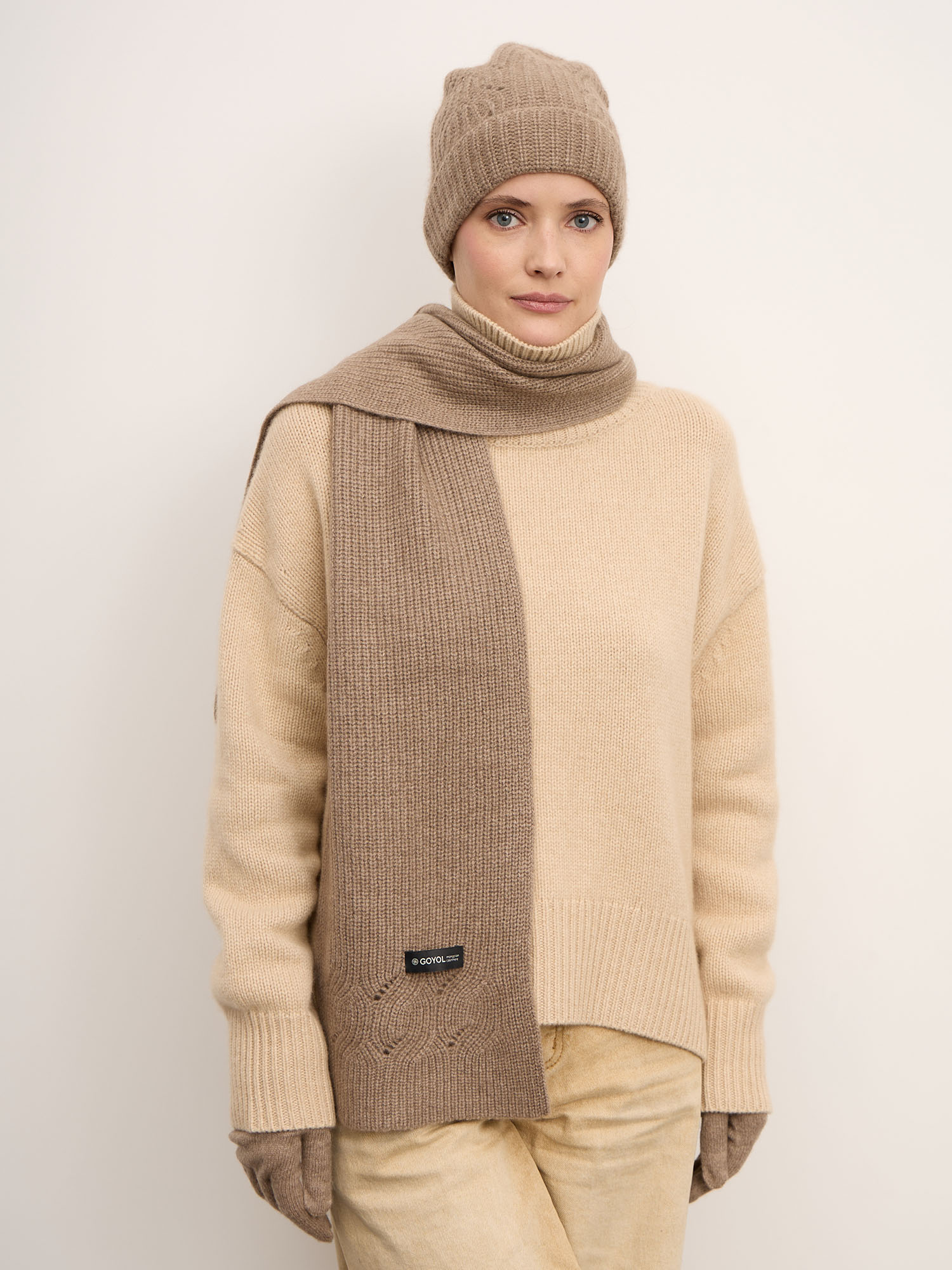 100% кашемир. Натуральный кашемир отличается исключительной мягкостью, лёгкостью и превосходными теплоизоляционными свойствами. Материал приятен к коже, хорошо удерживает тепло и остаётся лёгким и дышащим.