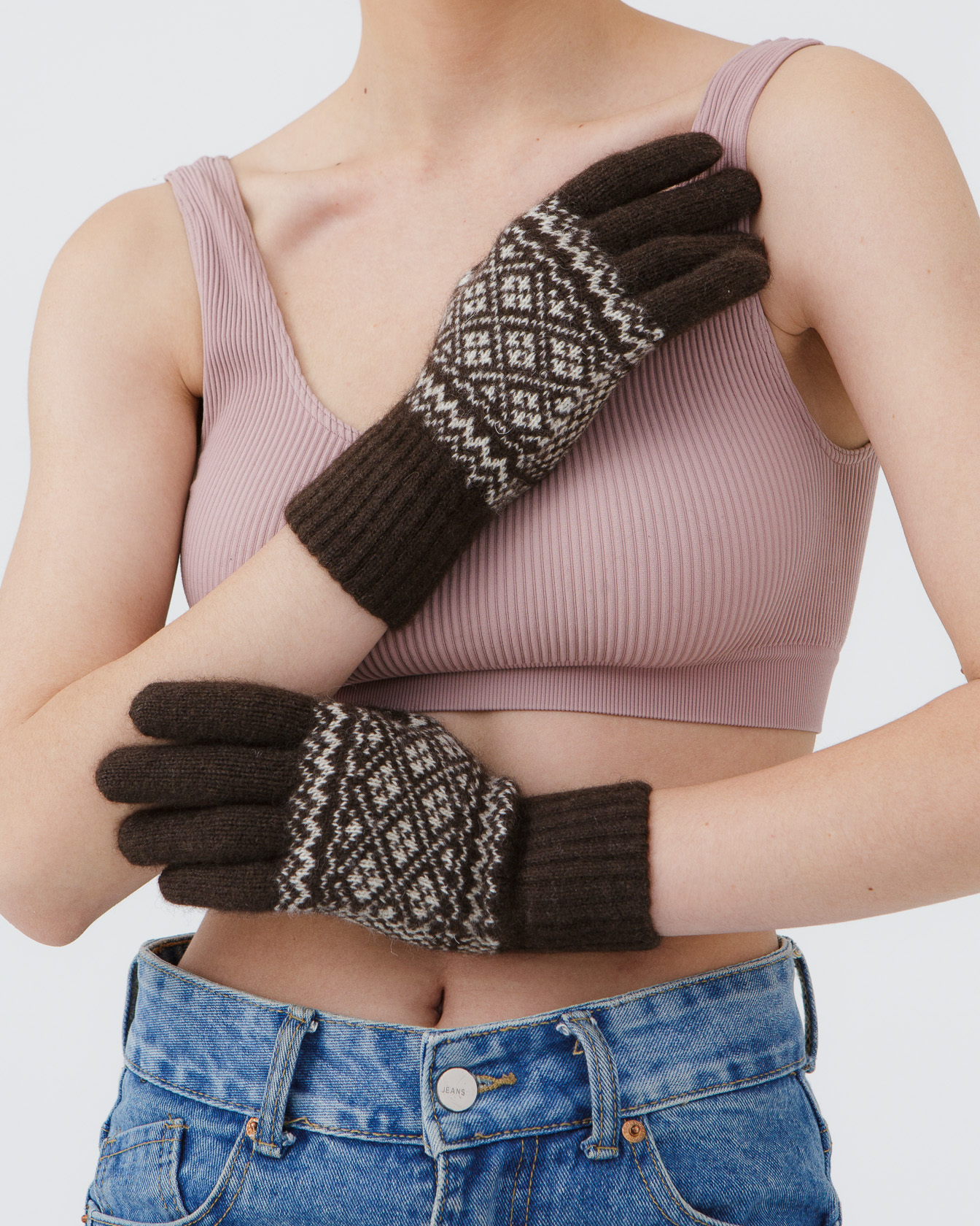 Эти перчатки из пуха яка темно-коричневого цвета — незаменимый аксессуар для холодного времени года. Изготовленные из натурального пуха яка, они обеспечивают превосходную теплоизоляцию, позволяя вашим рукам оставаться в тепле даже при низких температурах. Элегантный геометрический рисунок придает перчаткам стильный вид, подходящий как для повседневного использования, так и для особых случаев. Эластичные манжеты обеспечивают плотное прилегание, предотвращая проникновение холода. Мягкие, легкие и прочные, эти перчатки станут вашим любимым аксессуаром для зимы.