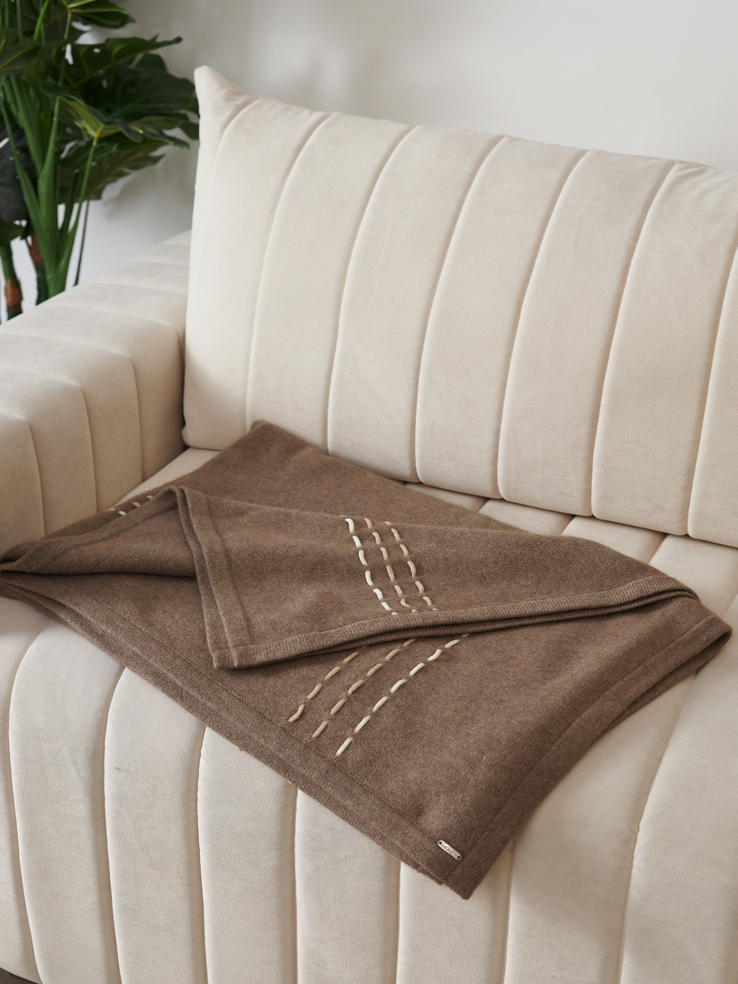 Плед из кашемира — это воплощение утонченного комфорта и премиального качества. Невесомо мягкий, он деликатно окутывает теплом, создавая ощущение уюта и расслабления. Натуральный кашемир славится своей способностью сохранять тепло, оставаясь при этом легким и дышащим, что делает этот плед идеальным спутником для отдыха в любое время года.