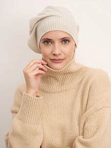 Классическая форма берета с мягкой драпировкой и аккуратной эластичной резинкой по краю. Лаконичное исполнение без декоративных элементов делает модель универсальной и актуальной вне времени. Пластичная структура позволяет носить берет в разных вариантах — слегка сместив на бок или оставив объем сзади.