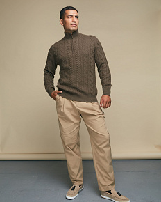 Молния у горловины для регулировки посадки, фактурная вязка, эластичные манжеты и нижняя резинка, сохраняющие форму изделия.