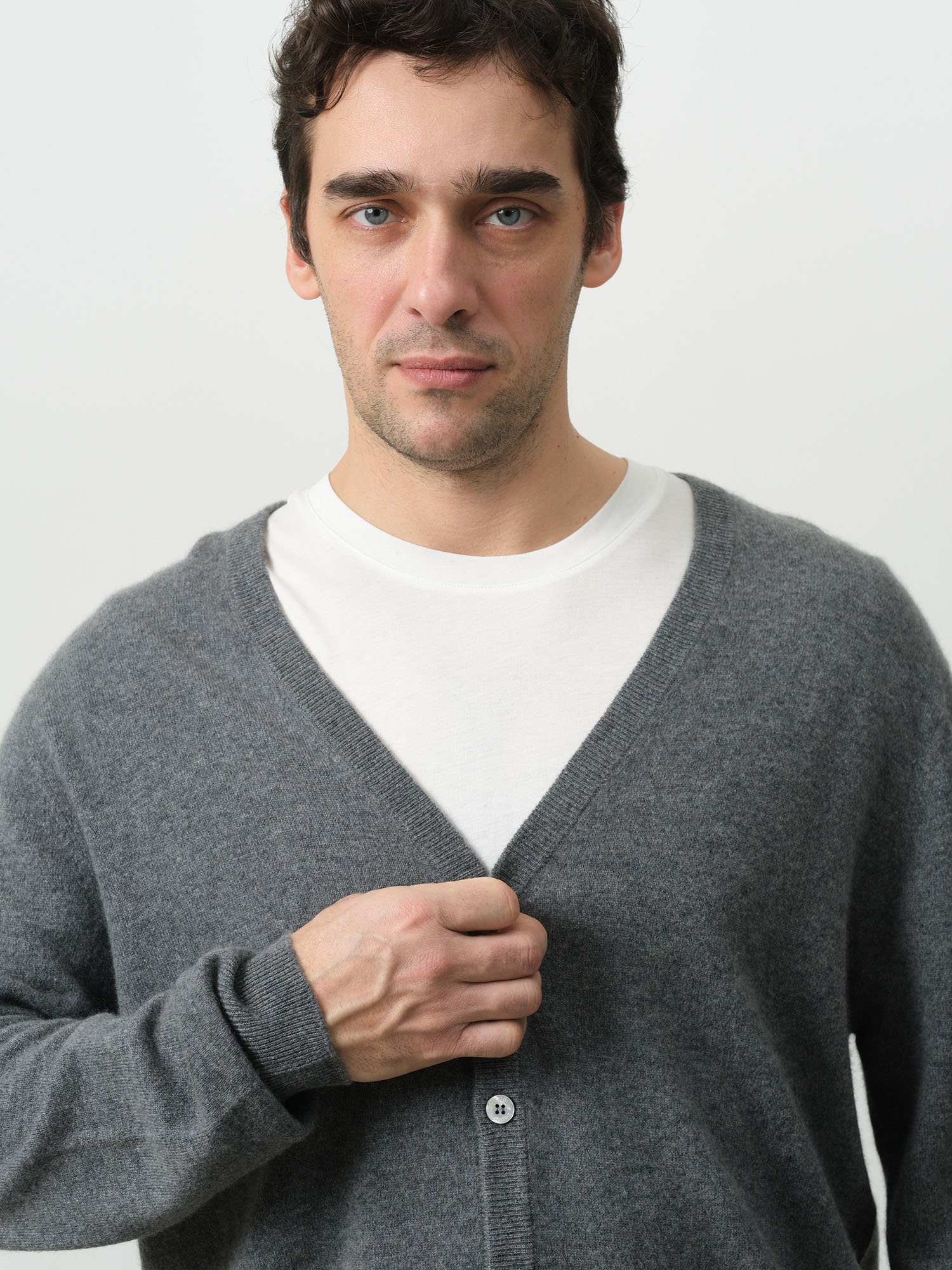 Классический мужской кардиган из натурального кашемира — универсальная модель для повседневного и делового гардероба. Лаконичный дизайн и мягкая фактура делают его идеальным выбором для комфортных образов в любое время года.