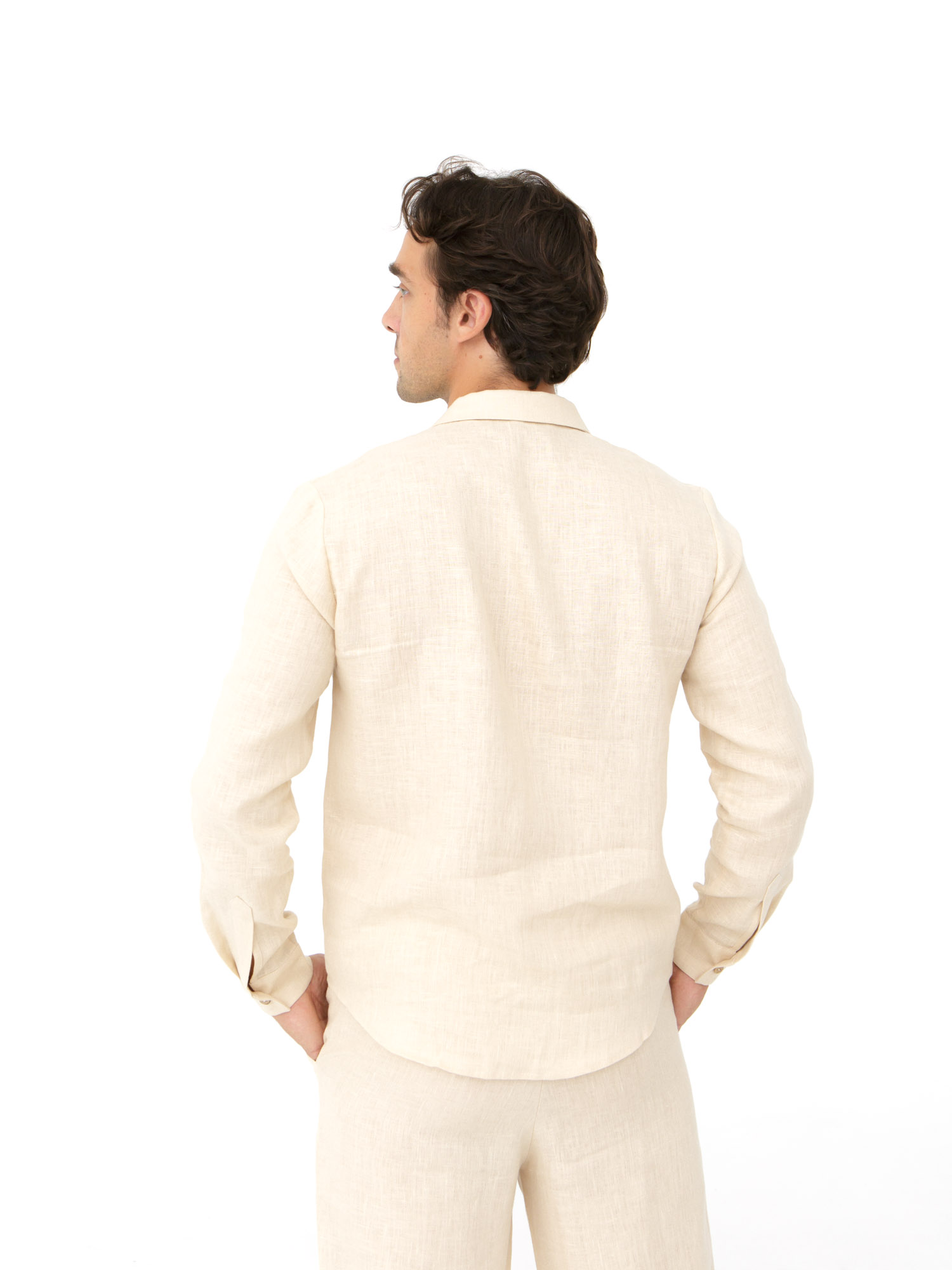Рубашка льняная мужская 606 молочная