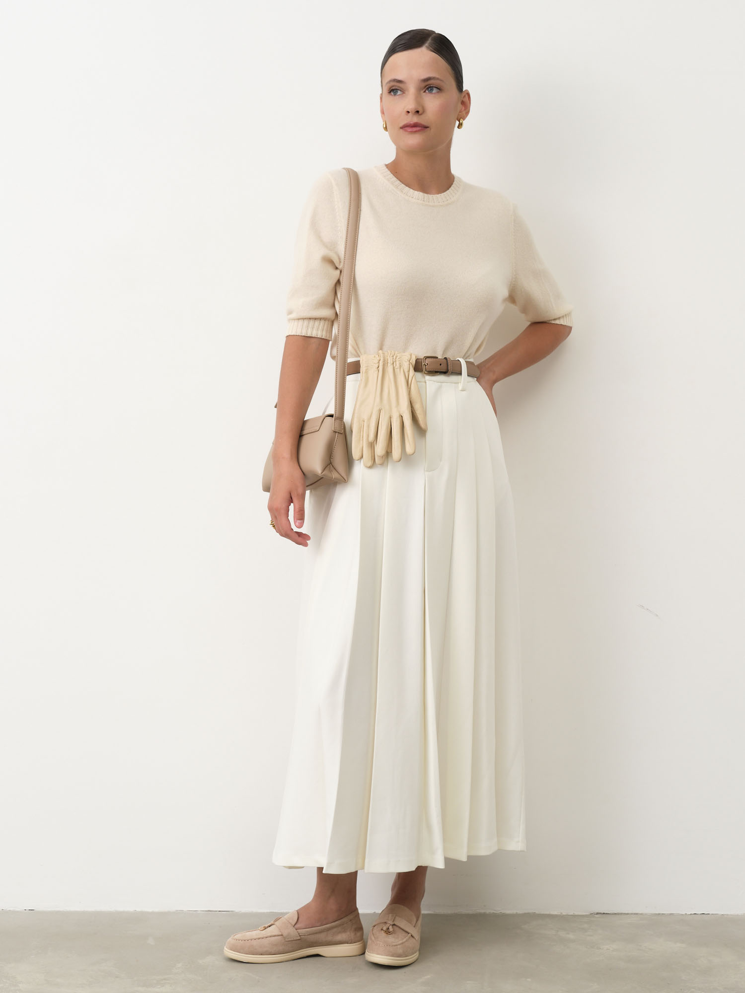 Кремовый — нежный светлый оттенок, который придаёт образу лёгкость и элегантность. Цвет универсален и гармонично сочетается с бежевыми, карамельными, серыми и пастельными оттенками одежды.